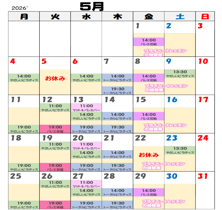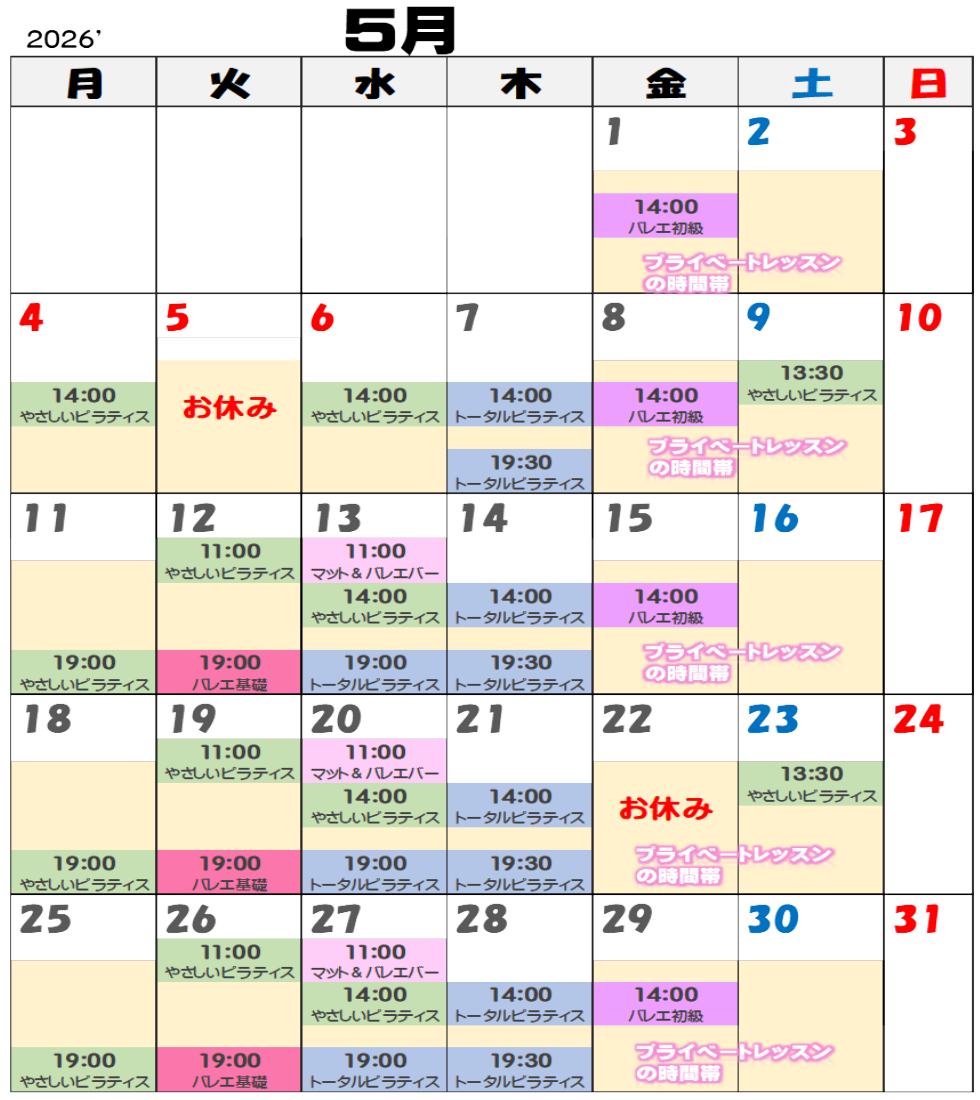 5月レッスンスケジュール